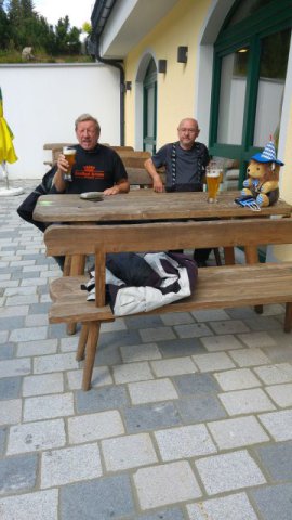 ... das wohlverdiente Bierchen schmeckt ... und Seppl freut sich auf meinen Enkel